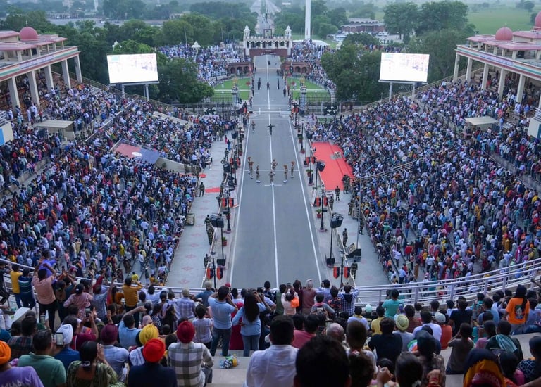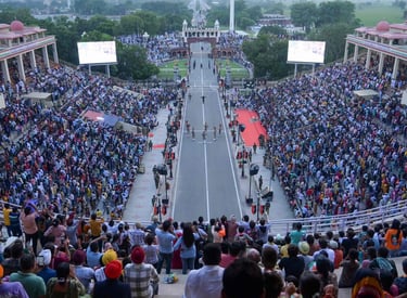 The morning is dedicated to a solemn visit to Jallianwala Bagh, a site of historical importance and remembrance. In the late afternoon, we travel to the Wagah Border to witness the spectacular, flag-lowering "Beating Retreat" ceremony—a thrilling display of military showmanship and patriotism.